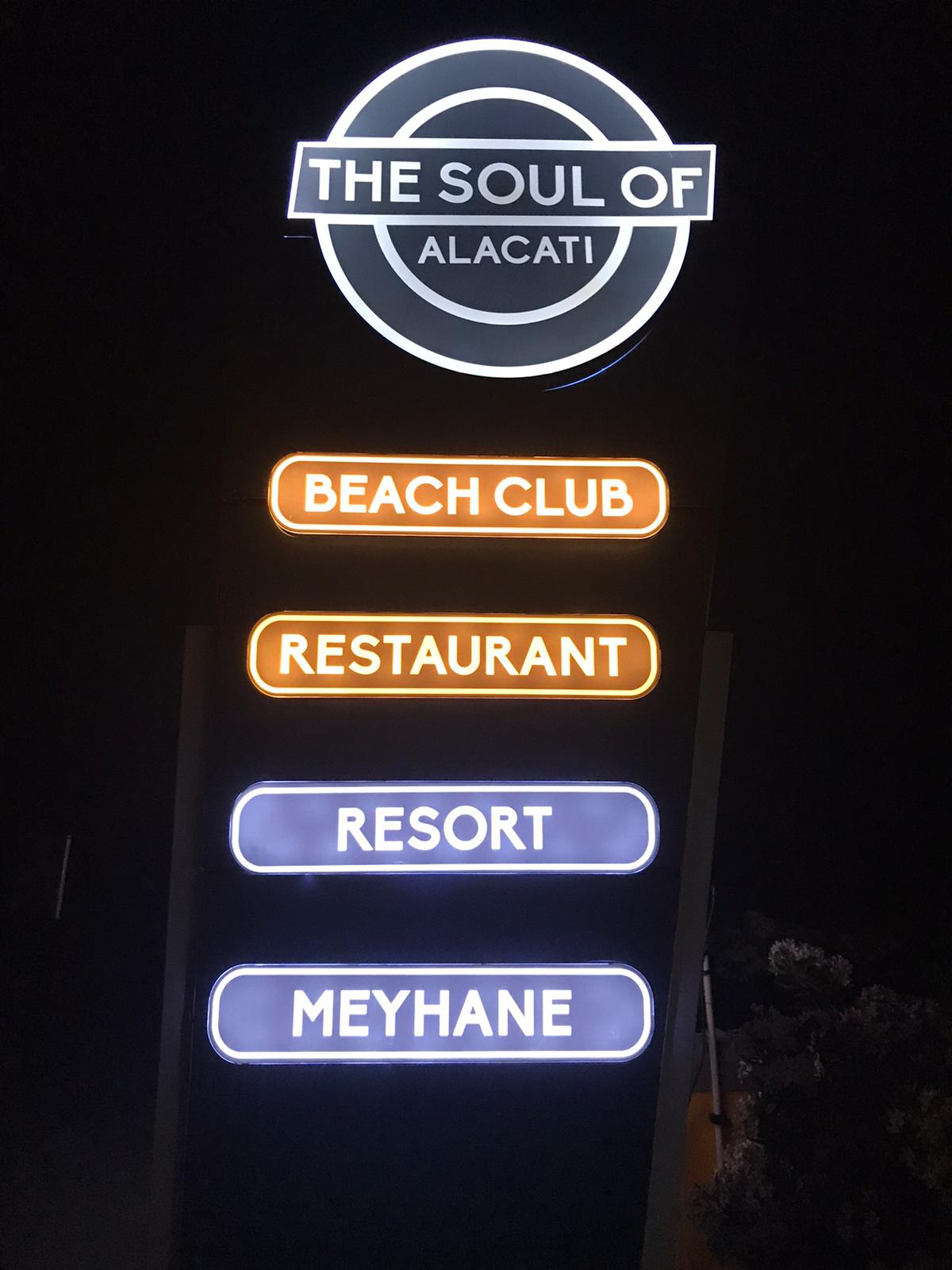 Alaçatı’nın ruhuna uygun ahşap tabelalardan, modern ışıklı sistemlere kadar aradığınız estetik burada.